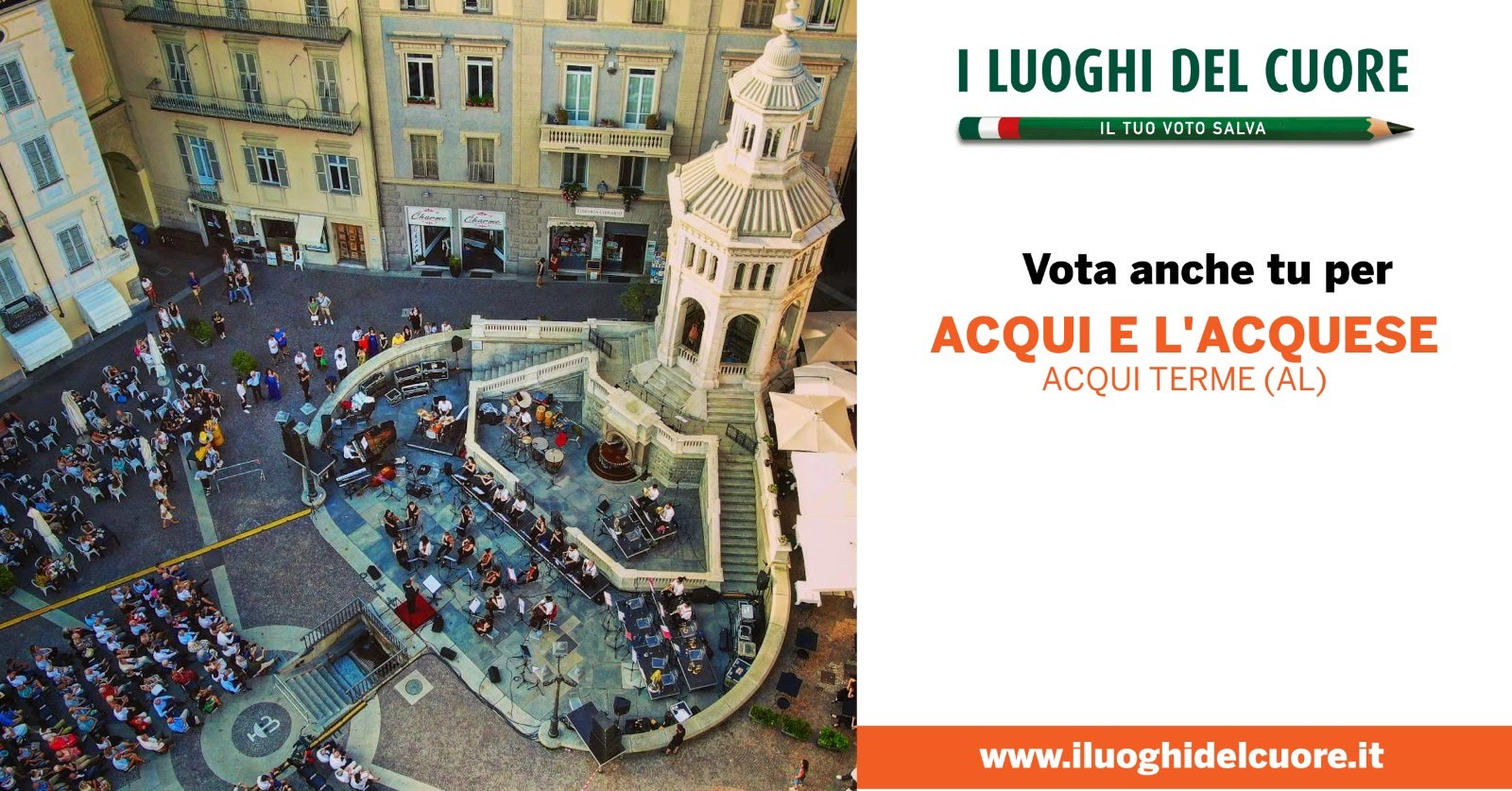 "AIUTACI A DIVENTARE LUOGO DEL CUORE" sostenendo la candidatura di Acqui e l'Acquese, se avrai piacere potrai iscriverti al FAI e diventare anche tu un volontario che aiuterà la promozione e la valorizzazione dei luoghi e dei territori che più ti stanno a cuore